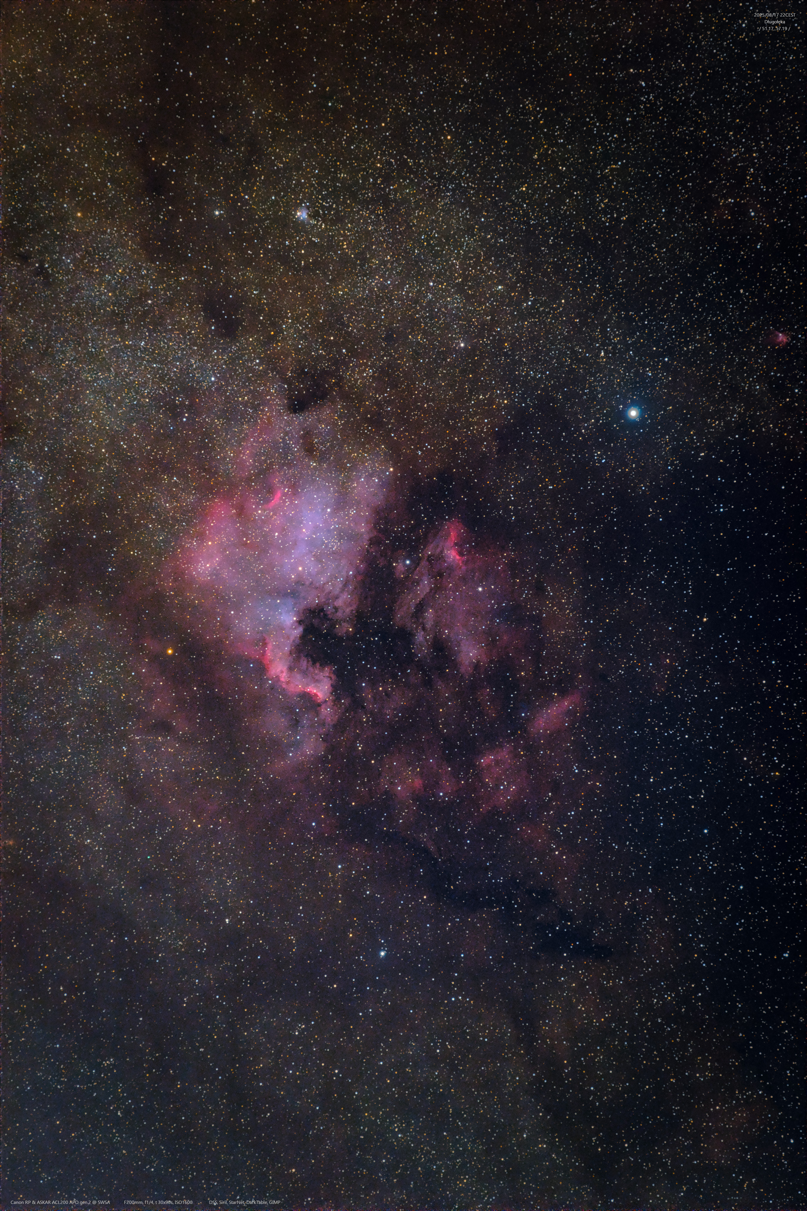 NGC 7000 (Mgławica Ameryka Północna) wraz z Denebem w gwiazdozbiorze Łabędzia